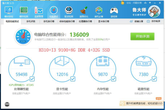 由上圖可以看出,澤創(chuàng)多網(wǎng)卡網(wǎng)安主板ZC-H310QV主板配酷睿九代I3 9100處理器搭載8G筆記本內(nèi)存32G固態(tài)硬盤跑出了驚人的136009分!性能都可以趕超7代的I5處理器了,如果采用雙通道內(nèi)存,再配一個大容量高速固態(tài)硬盤,得分還可以更高!